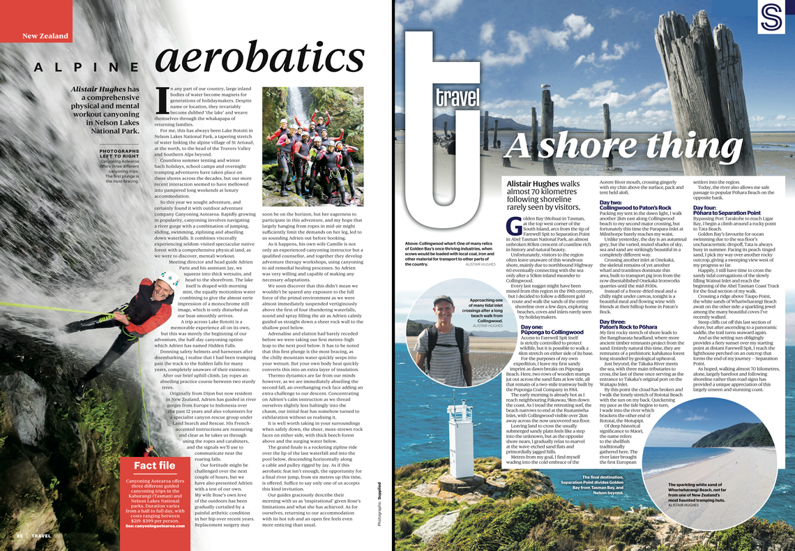 Two travel and adventure related articles for the Sunday Star Times Travel supplement